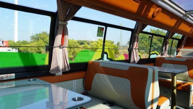 据了解,建水古城旅游观光双层巴士的车身设计独具匠心,将建水的著名景点巧妙串联,乘客在旅途中仿佛穿梭于一幅幅精美的画卷中。车内设计充分考虑了乘客的舒适体验,配备了软包座椅、空调、雨伞、冰箱、电视、USB插孔等设施,并提供茶水、咖啡等贴心服务。